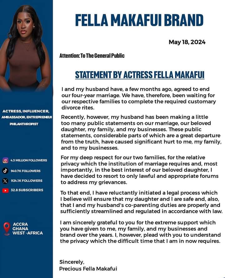 He further ranted about their divorce, making a lot of allegations against Fella.