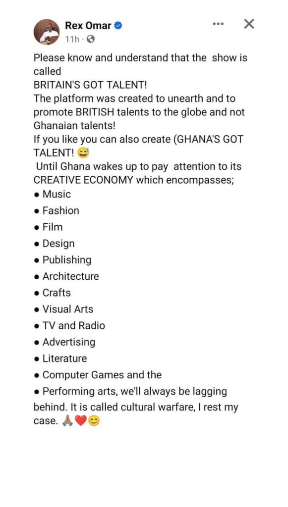 Reacting to this, Rex Omar asked them to create Ghana’s Got Talent if they like.